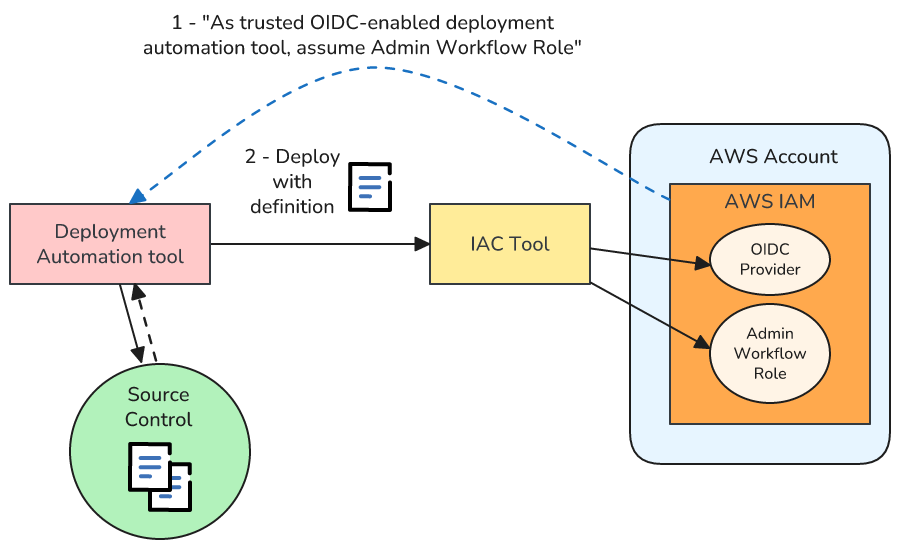 - The OIDC provider, if we’re using an AWS-external deployment automation tool that supports OIDC